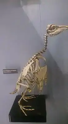 The rockhopper penguins have been considered to consist of two species, northern and southern rockhopper penguin, since research published in 2006 demonstrated morphological, vocal, and genetic differences between the two populations.[2][3] Molecular datings suggest that the genetic divergence with the southern rockhopper penguin may have been caused by a vicariant event caused by a shift in the position of the Subtropical Front during the mid-Pleistocene climate transition.[4] Analysis of a part of a mitochondrial control region from a northern rockhopper penguin found on the Kerguelen Islands showed that it may have come from Gough Island, 6,000 km away, and that the southern and northern rockhoppers are genetically separate, though some individuals may disperse from their breeding colonies.[5] Many taxonomists have yet to recognize the split, although some are beginning to do so.