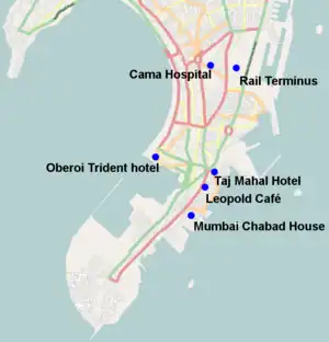 ![]() Locations of the 2008 Mumbai attacks | |