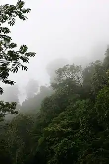 While the state is within the tropical latitudes, its climate varies with altitude.[30] There are three principal climate regions in the state. The first is the hot and subtropical lands. This accounts for about 30% of the state. The next is the semi hot and semi humid regions which account for about 18%, and temperate and semi humid at about 16%. All of these climates experience a rainy season in the summer and early fall.[31] As most of the state is over 2,000 m (6,562 ft) above sea level, average temperature is about 18 °C (64.4 °F), except near the coast. The coastline along with the regions of Yautepec, Putla, parts of Huahuapan and Silacayoapan are hot and relatively dry. Hot and humid climates predominate in Villa Alta, and the Central Valleys area and all others over 2,000 m (6,562 ft) above sea level have a temperate climate. A few of the highest peaks, such as those in Tehuantepec and Putla have a cold climate. Precipitation varies from between 430 to 2,700 mm (16.9 to 106.3 in) per year. The Sierra Mazteca, Textepec and other areas near the Veracruz border have rains year round. The rest of the state receives the majority of its rain during the summer and early fall. The higher elevations can experience freezing temperatures in December and January.[30] The Chivela mountain pass in Isthmus of Tehuantepec provides a gap for the wind to pass between mountain ranges,[33] creating the best conditions for wind power in Mexico.[34]