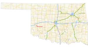 State Highway 55 is a state highway in western Oklahoma. It runs for 39.9 miles (64.2 km)[1] from Carter, Oklahoma to the unincorporated community of Lake Valley. It has no lettered spur routes.