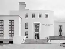• Prominent Features: Tall vertical windows; Rectilinear poured-in-place concrete exterior; Distinguished woodwork; New Deal mural in courtroom