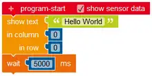 | List | Includes blocks to create a list and to search or sort list elements. | program-start | Each program starts with this block. This block is always available in the workspace. | |||