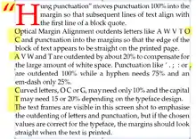 This technique is related to and sometimes equated with hanging punctuation, though optical margin alignment is not limited to adjusting only punctuation.