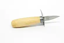 Opening oysters, referred to as "oyster-shucking", requires skill. The preferred method is to use a special knife (called an oyster knife, a variant of a shucking knife), with a short and thick blade about 5 cm (2 in) long.