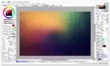 SAI is a lightweight painting application. The user interface allows multiple documents to be opened at the same time. The drawing canvas can be both zoomed and rotated using the sliders on the navigator or the hotkeys configured on the keyboard. The toolbar on the top part of the screen also includes a button to mirror the drawing view without mirroring the actual drawing. It is also possible to open multiple viewports to the same document. An application-wide scratchpad (which can be used as a color mixing panel) is provided, which is saved between sessions. Colors can be stored in the swatches panel.