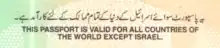 - Third page declares that the passport is valid to travel to all countries of the world except Israel.