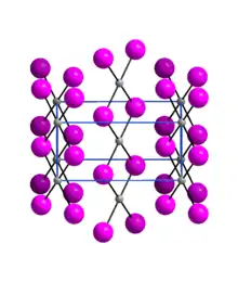 Palladium(II) iodide is an almost X-ray amorphous black powder. The α-modification has an orthorhombic crystal structure with the space group Pnmn(space group no. 58, position 5).[6]