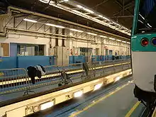 The line was modernised in 1974 with the establishment of the Poste de commande centralisé ("centralised control station"). In 1975, the Sprague-Thomson sets were replaced by the MA 51 articulated sets already operating on line 13, with those trains eventually being replaced by the MF 67 sets on 15 June 1994.[5] Line 10 is the only line, with the exception of the short 3bis and 7bis lines, that is not equipped with Automatic Train Operation as the trains circulating at that time were not compatible with the technology. When the trains are eventually replaced with a compatible model, it is believed that the relatively low traffic of the line will not justify the investment in the installation of such a system.[20]