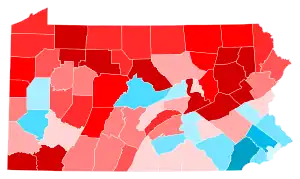 Prior to the election, Pennsylvania was expected to be close as polling showed the results within the margin of error, but many election experts viewed that Clinton had an edge.[2][3] However, on Election Day, Pennsylvania unexpectedly swung to Donald Trump. Trump carried 56 of the state's 67 counties, predominantly rural or suburban counties, while Clinton carried much of the Philadelphia metropolitan area as well as other cities including Pittsburgh, Harrisburg and Scranton. Nonetheless, some areas of traditional Democratic strength such as Luzerne County, where Wilkes-Barre is located, saw swings in margins of up to 25% toward Donald Trump, making him the first Republican nominee for president to win Pennsylvania since George H. W. Bush in 1988.