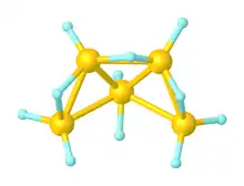 Pentaborane(11) is inorganic compound with the chemical formula B5H11. It is an obscure boron hydride cluster, especially relative to the heavily studied pentaborane(9) (B5H9). With two more hydrogen atoms than nido-pentaborane(9), pentaborane(11) is classified as an arachno- cluster.[1]