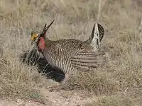 To support the concept of a perceptual trap, Patten and Kelly[1] cited a study of the lesser prairie chicken (Tympanuchus pallidicinctus). The species' natural environment, shinnery oak grassland, is often treated with the herbicide tebuthiuron to increase grass cover for cattle grazing.[1] Herbicide treatment resulted in less shrub cover, a habitat cue that caused female lesser prairie-chickens to avoid the habitat in favour of untreated areas. However, females who nested in herbicide-treated areas achieved comparable nesting successes and clutch sizes to those in untreated areas.[1] Patten and Kelly suggest that the adverse effects of tebuthiuron treatment on nesting success are countered by various effects, such as greater nest concealment through increased grass cover.[1] Therefore, female birds are erroneously avoiding a high-quality habitat. Patten and Kelly[1] also cited as a possible perceptual trap the cases of the spotted towhee (Pipilo maculatus) and rufous-crowned sparrow (Aimophila ruficeps), which tend to avoid habitat fragments, even though birds nesting in habitat fragments achieve increased nesting success due to a reduction in snake predation.[6]