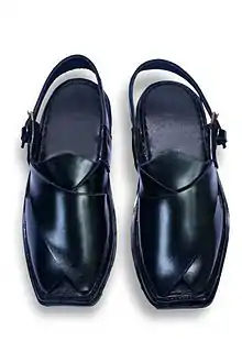 The Peshawari chappal (Pashto: پېښوري څپلی, Urdu: پیشاوری چپل) is a traditional type of footwear of Pashtuns, worn especially by Pashtuns in the Khyber Pakhtunkhwa region. The shoe takes its name from the city of Peshawar,[1] where it originates. While chappal is the word for flip-flops or sandals in Urdu, locals in Peshawar call the Peshawari Tsaplay (Pashto: څپلی ). The shoes are worn by men casually or formally, usually with the shalwar kameez. Because of their comfort, they are worn in place of sandals or slippers in Pakistan.
