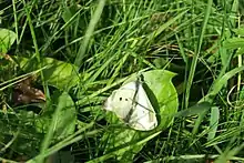 - ↑ In Europe, "cabbage white" and "cabbage butterfly" refer instead to Pieris brassicae, also known as "large white"