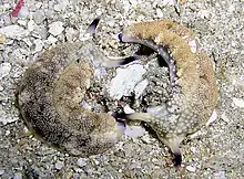 | Two Plakobranchus ocellatus seaslugs facing in opposite directions | |