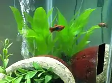 A juvenile platy, on bottom of aquarium tank