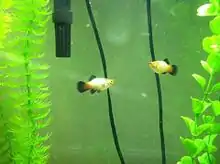 Two female Mickey Mouse platies, in aquarium