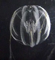 Pleurobrachia lack any sessile (attached) stages and are wholly planktonic in their life cycle. They are self-fertile hermaphrodites[6] that spawn eggs and sperm freely into the sea, and develop thereafter without any parental protection with indirect development.[2]