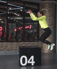 A plyometric box, also simply known as a plyo box or jump box, is a piece of training equipment used for plyometric exercises. Plyometric exercises are a type of explosive power training that uses muscle elasticity to produce rapid, forceful movements.[1] The plyometric box provides a stable platform for performing plyometric exercises such as box jumps, box squats, and box step-ups.