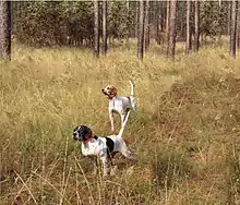 Many writers consider the Pointer to be the ultimate pointing dog breed because of its sensitive nose, big stylish movements and flashy pointing stance.[1][2][5][15] The Pointer is the most popular pointing dog breed used by sporting estates in the United Kingdom and commercial shooting preserves in the United States, they are also the most popular and successful pointing breed used in pointing dog trials in both countries.[2][3]