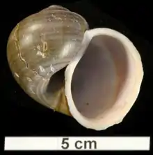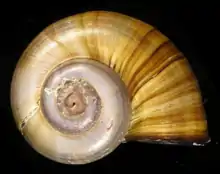 Apical view of a shell of Pomacea lineata
