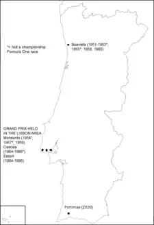 The Portuguese Grand Prix (Portuguese: Grande Prémio de Portugal) is a motorsports event that was first held in 1951 as a sportscar event, and then intermittently disappearing for many years before being revived again. In 1964 event was held as a sportscar race, and the 1965 and 1966 editions being held for Formula Three entrants. The event was part of the Formula One World Championship in 1958–1960, then again between 1984 and 1996, and after a long hiatus, it was revived for 2020 and 2021. The event has been held at several circuits throughout its history.