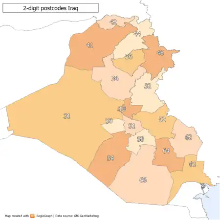 2-digit postcode areas Iraq(defined through the first two postcode digits)