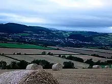 Presteigne (/prɛsˈtn/; Welsh: Llanandras: the church of St. Andrew) is a town and community in Radnorshire, Powys, Wales on the south bank of the River Lugg. Formerly the county town of the historic county of Radnorshire, the town has, in common with several other towns close to the Wales-England border, assumed the motto, "Gateway to Wales". The border wraps around three sides of the town (north, east and south). Nearby towns are Kington, Herefordshire to the south and Knighton to the north, and surrounding villages include Norton (within the community) and Stapleton. The town falls within the Diocese of Hereford. The community has a population of 2,710; the built-up area had a population of 2,056.[2]