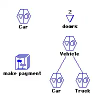 Prograph took these concept further, introducing a combination of object-oriented methodologies and a completely visual environment for programming. Objects are represented by hexagons with two sides, one containing the data fields, the other the methods that operate on them. Double-clicking on either side would open a window showing the details for that object; for instance, opening the variables side would show class variables at the top and instance variables below. Double-clicking the method side shows the methods implemented in this class, as well as those inherited from the superclass. When a method itself is double-clicked, it opens into another window displaying the logic.