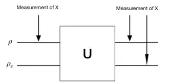 The other possible way for mutations to occur is due to errors in the replication process. Due to the no-cloning theorem, it is impossible to produce perfect copies of systems that are originally in unknown quantum states.[4] However, quantum cloning machines make it possible to create imperfect copies of quantum states, in other words, the process introduces some degree of error.[7] The error that exists in current quantum cloning machines is the root cause for the second kind of mutations in the artificial life experiment. The imperfect cloning operation can be seen as:[3]