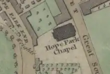 Hope Park Chapel on a map of 1825, showing its open surroundings at the time of its erection