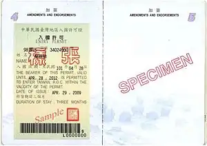 [22] Unlike passports of Taiwanese residents, passports for NWOHRs contain a special stamp that indicates non-resident status and exempts holders from conscription.