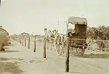 Alexander Crawford took over the maintenance of the fence from Anketell as each section was finished and remained in charge until he retired in 1922.[4] The area inside the fence to the west became known as "Crawford's Paddock". The fence was maintained at first by boundary riders riding bicycles and later by riders astride camels. However, fence inspection was difficult from atop the tall animal. In 1910, a car was bought for fence inspection, but it was subject to punctured tyres. It was found the best way to inspect the fence was using buckboard buggies, pulled by two camels.