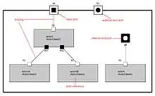 The actor's ports can be part of its interface (visible from the exterior) or part of its structure (used by itself) or both. Ports that are part of the interface only are called relay ports. They are directly connected to a port of a sub actor (they are delegating to the sub actor). Ports that are part of the structure only are called internal end ports. Ports that belong to both, structure and interface, are called external end ports.