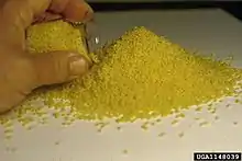 Red imported fire ants have negative impacts on seed germination. The extent of the damage, however, depends on how long seeds are vulnerable for (dry and germinating) and by the abundance of the ants.[158] One study showed that while these ants are attracted to and remove seeds which have adapted for ant dispersal, red imported fire ants damage these seeds or move them in unfavourable locations for germination. In seeds given to colonies, 80% of Sanguinaria canadensis seeds were scarified and 86% of Viola rotundifolia seeds were destroyed.[159] Small percentages of longleaf pine (Pinus palustris) seeds deposited by workers successfully germinate, thus providing evidence that red imported fire ants help the movement of seeds in the longleaf pine ecosystem. Elaiosome-bearing seeds are collected at a higher rate in contrast to nonelaiosome-bearing seeds and do not store them in their nests, but rather in surface trash piles in the mound vicinity.[160]