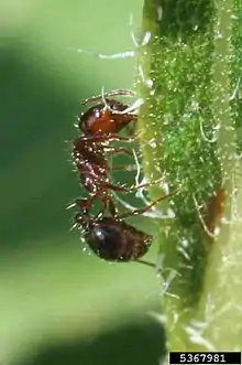 332. Coppler, L.B.; Murphy, J.F.; Eubanks, M.D. (2007). "Red imported fire ants (Hymenoptera: Formicidae) increase the abundance of aphids in tomato". The Florida Entomologist. 90 (3): 419–425. doi:10.1653/0015-4040(2007)90[419:RIFAHF]2.0.CO;2. hdl:10919/95478. S2CID 41237855.
