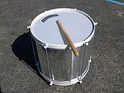 A repinique is a two-headed drum used in samba baterias (percussion ensembles). It is used in the Rio de Janeiro and São Paulo Carnival baterias and in the baterias of Bahia, where it is known as repique. It is equivalent to the tik-tik in the non-Brazilian drum kit or to the tenor drum in marching bands. It is tuned very high to produce a tone that cuts through the sound of the rest of the bateria and it is a lead and solo instrument.[1]