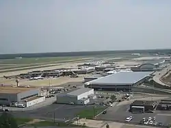 A terminal building designed by Marcellus Wright and Son was completed in 1950.[14] It was expanded from 1968 to 1970, which included the current passenger concourses.[15]