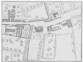 The watercourse drained first the seasonally wet (and occasionally flooded) ground at St George's Fields, now Geraldine Mary Harmsworth Park, in western Southwark.[1] Its course was east as follows: it took the line of Brook Drive then passed by the Elephant and Castle,[2] then passed the site of Lock Hospital, Kent Street.[3] This upper section was also known before that hospital's closure in the early 19th century as the Lock Stream.[3] It then passed the grounds of (since demolished) Bermondsey Abbey to the south, forming the channel north of what was the large Thames island of Bermond's ey (island).[4] The channel is today resembled by Abbey Street.[2] In the first millennium, the river merged into the Thames by hooking north at three points. At least three tidally broadly flooded mouths existed, two of which were west of the former small island of Horsleydown and the third at the approximate site of St Saviour's Dock.[3][5] The Neckinger's northern mouth (now a surface water point of discharge into a deep, excavated inlet) divides the much-built up former marshland at the east end of Horsleydown island, known as Shad Thames and the low part of Bermondsey historically known as Jacob's Island to the east, which has also been built-up.