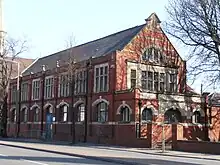The Roath Branch Library was designed by architects Teather & Wilson and built between 1900 and 1901 on a triangular site[2] bounded by Newport Road, Four Elms Road and Clifton Street. The red brick building with bathstone dressing was extended eastwards in 1936. It was completely refurbished in 1992/3.[2]
