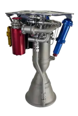 Rutherford is a liquid-propellant rocket engine designed by aerospace company Rocket Lab[8] and manufactured in Long Beach, California.[9] The engine is used on the company's own rocket, Electron. It uses LOX (liquid oxygen) and RP-1 (refined kerosene) as its propellants and is the first flight-ready engine to use the electric-pump feed cycle. The rocket uses a similar engine arrangement to the Falcon 9; a two-stage rocket using a cluster of nine identical engines on the first stage, and one vacuum-optimized version with a longer nozzle on the second stage. This arrangement is also known as an octaweb.[10][6][7] The sea-level version produces 24.9 kN (5,600 lbf) of thrust and has a specific impulse of 311 s (3.05 km/s), while the vacuum optimized-version produces 25.8 kN (5,800 lbf) of thrust and has a specific impulse of 343 s (3.36 km/s).[11]