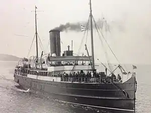 On the morning of Saturday 7 June 1924, Peel Castle went aground in Douglas Bay.[3] She had left Liverpool operating the midnight sailing, and had approximately 550 passengers embarked.[3] As she approached Douglas, Peel Castle encountered a bank of fog which forced her to slow her speed.[3] Steaming at minimal speed, Peel Castle continued inbound to Douglas, sounding her whistle continuously, but ran aground on a bank of sand in the middle of Douglas foreshore.[3] The impact was reported to be so slight that passengers were unaware of the situation until members of the ship's company informed them of the development.[3]