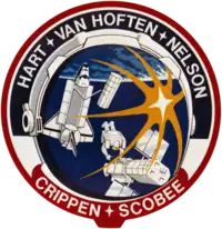 ![]() STS-41-C mission patch ![]() Robert Crippen, Terry Hart, James van Hoften, George Nelson, Dick Scobee | |