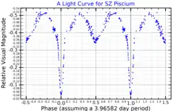 - ↑ Eaton, J. A.; Scaltriti, F.; Cerruti-Sola, M.; Sarma, M. B. K.; Ausekar, B. D.; Catalano, S.; Rodono, M. (March 1982). "Light curves of SZ Piscium for 1977 and 1978". Astrophysics and Space Science. 82 (2): 289–306. Bibcode:1982Ap&SS..82..289E. doi:10.1007/BF00651440. S2CID 120020249. Retrieved 24 June 2022.