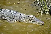 Fossil remains of a saltwater crocodile excavated in northern Queensland were dated to the Pliocene.[21][22] The saltwater crocodile's closest extant (living) relatives are the Siamese crocodile and the mugger crocodile.[23][24][25][26]