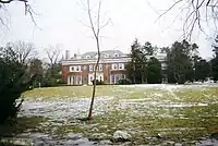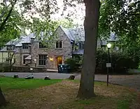 Political activism has played a crucial role in forming the spirit of the Sarah Lawrence community since the early years of the college. As early as 1938, students were volunteering in working-class sections of Yonkers, New York to help bring equality and educational opportunities to poor and minority citizens, and the Sarah Lawrence College War Board, organized by students in the fall of 1942, sought to aid troops fighting in World War II. During a time when the college's enrollment consisted of only 293 students, 204 signed up as volunteers during the first week of the War Board.[35] During the so-called McCarthy Years, a number of Sarah Lawrence's faculty members were accused by the American Legion of being sympathetic to the Communist Party, and were called before the Jenner Committee.[36] Since that time, activism has played a central role in student life, with movements for civil rights and against the Vietnam War in the 1960s and for student and faculty diversity in the 1980s. Also in the 1960s, students established an Upward Bound program for students from lower-income and poverty areas to prepare for college.[37] Theatre Outreach, the Child Development Institute, the Empowering Teachers Program, the Community Writers program, the Office of Community Partnership, and the Fulbright High School Writers Program are among the many programs founded since the 1970s to provide services to the larger community. In the late 1980s, students occupied Westlands, the main administrative building for the campus, in a sit-in for wider diversity. Students occupied Westlands again in 2016, in a sit-in supporting improved wages and safer working conditions for the college's recently unionized facilities workers. For many years, the college has been considered as being at the vanguard of the gay rights movement and many other progressive causes.