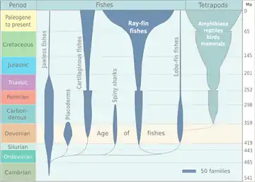 - ↑ Coates, M.I. (2009). "Palaeontology: Beyond the age of fishes". Nature. 458 (7237): 413–414. Bibcode:2009Natur.458..413C. doi:10.1038/458413a. PMID 19325614. S2CID 4384525.