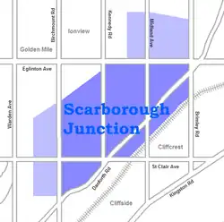 Scarborough Junction (also known as Kennedy Park) is a small neighbourhood in the Scarborough district of Toronto, Ontario, Canada. It is bordered by Birchmount Road, Brimley Road, Eglinton Avenue, and St. Clair Avenue. Scarbrough Junction has an approximated population of 20,000. The population consists of 1/4 Caucasian, 2/4 Asian (South and East) and 1/4 other (Black, Latino, etc.)[1]
