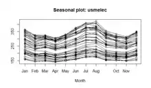 • A seasonal subseries plot is a specialized technique for showing seasonality