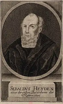 Sebald Heyden (8 December 1499 – 9 July 1561)[1] was a German musicologist, cantor, theologian, hymn-writer and religious poet. He is perhaps best known for his De arte canendi ("On the Art of Singing", third installment published 1540) which is considered to have had a major impact on scholarship and the teaching of singing to young boys.[2] He wrote hymns such as "O Mensch, bewein dein Sünde groß". It has been speculated that Heyden was the world's first true musicologist.[3]