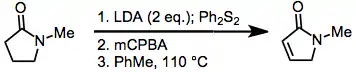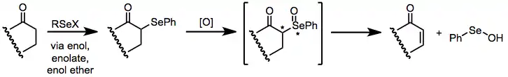 Selenoxide elimination (also called α-selenation)[1] is a method for the chemical synthesis of alkenes from selenoxides. It is most commonly used to synthesize α,β-unsaturated carbonyl compounds from the corresponding saturated analogues.[2] It is mechanistically related to the Cope reaction.